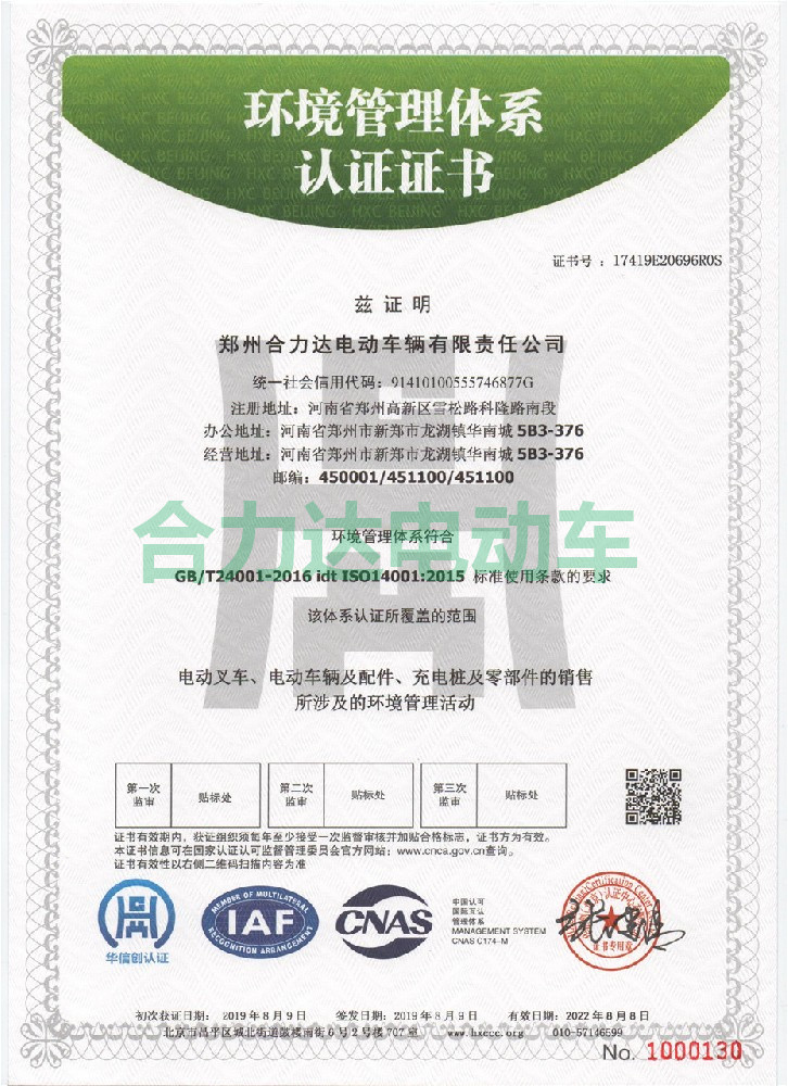 公司已通過國家相關(guān)部門頒發(fā)的多種體系認(rèn)證證書,搬運(yùn)車和蓄電池觀光車取得國家特種設(shè)備制造許可證,2011年公司被河南省發(fā)改委、科學(xué)技術(shù)廳、科學(xué)院、農(nóng)科院共同頒發(fā)“河南省**科技型企業(yè)” 。